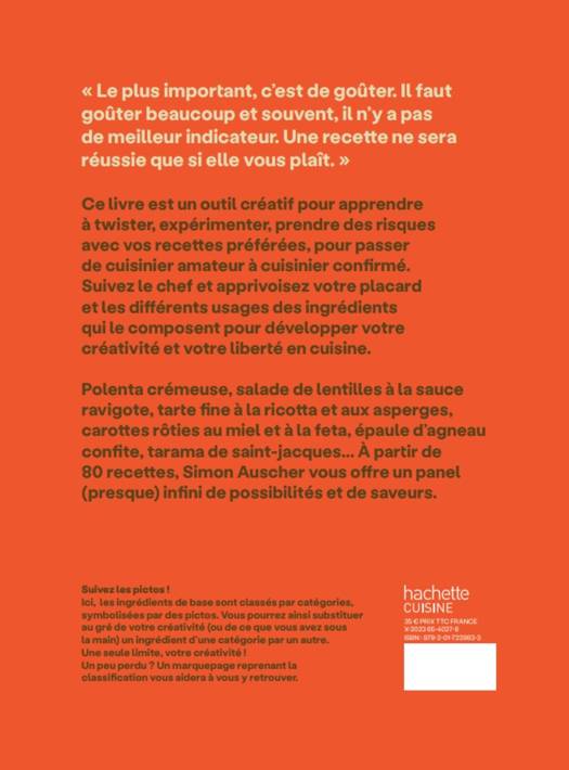 Ce livre est un outil créatif pour apprendre à twister, expérimenter, prendre des risques avec vos recettes préférées, pour passer de cuisinier amateur à cuisinier confirmé. Suivez le chef et apprivoisez votre placard et les différents usages des ingrédients qui le composent pour développer votre créativité et votre liberté en cuisine.