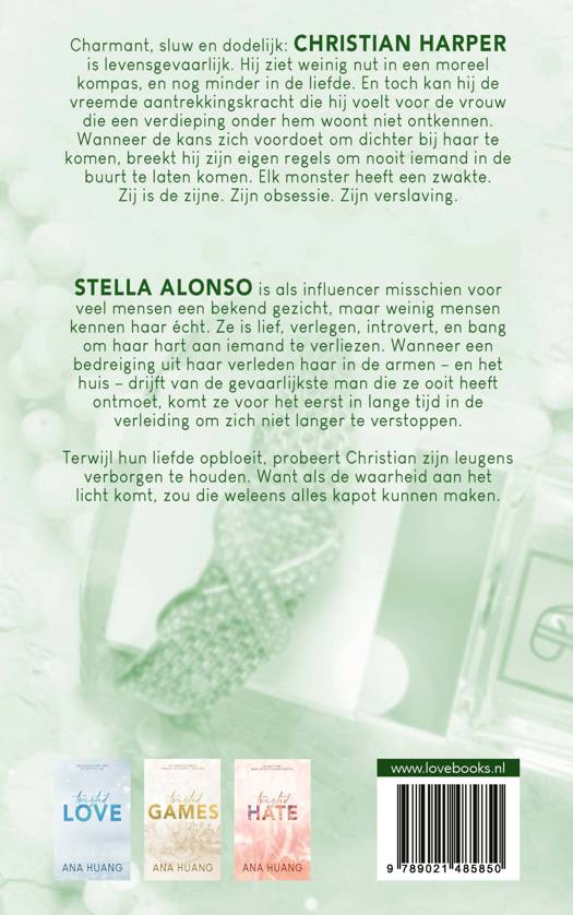 Charmant, sluw en dodelijk: Christian Harper is levensgevaarlijk. Hij ziet weinig nut in een moreel kompas, en nog minder in de liefde. En toch kan hij de vreemde aantrekkingskracht die hij voelt voor de vrouw die een verdieping onder hem woont niet ontkennen. Wanneer de kans zich voordoet om dichter bij haar te komen, breekt hij zijn eigen regels om nooit iemand in de buurt te laten komen. Elk monster heeft een zwakte. Zij is de zijne. Zijn obsessie. Zijn verslaving.