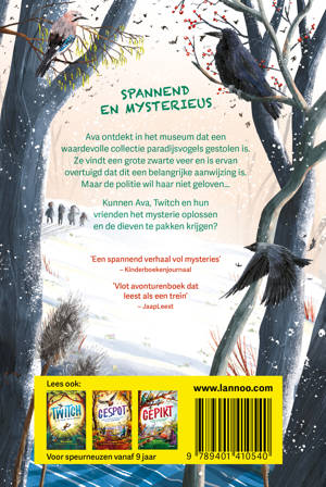 Ava ontdekt in het museum dat een waardevolle collectie paradijsvogels gestolen is. Ze vindt een grote zwarte veer en is ervan overtuigd dat dit een belangrijke aanwijzing is. Maar de politie wil haar niet geloven... Kunnen Ava, Twitch en hun vrienden het mysterie oplossen en de dieven te pakken krijgen?