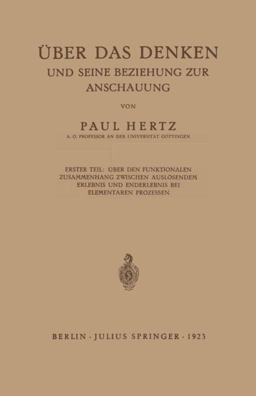 Erster Teil: Über Den Funktionalen Zusammenhang Zwischen Auslösendem Erlebnis Und Enderlebnis Bei Elementaren Prozessen
