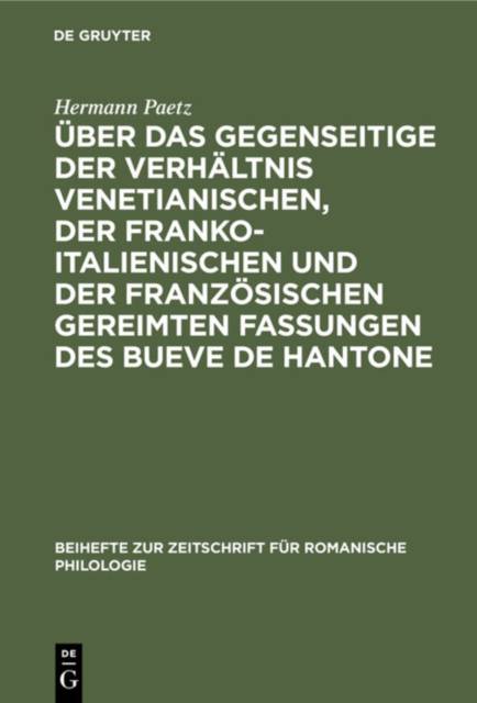 Keine ausführliche Beschreibung für "Über das gegenseitige der Verhältnis venetianischen, der franko-italienischen und der französischen gereimten Fassungen des Bueve de Hantone" verfügbar.