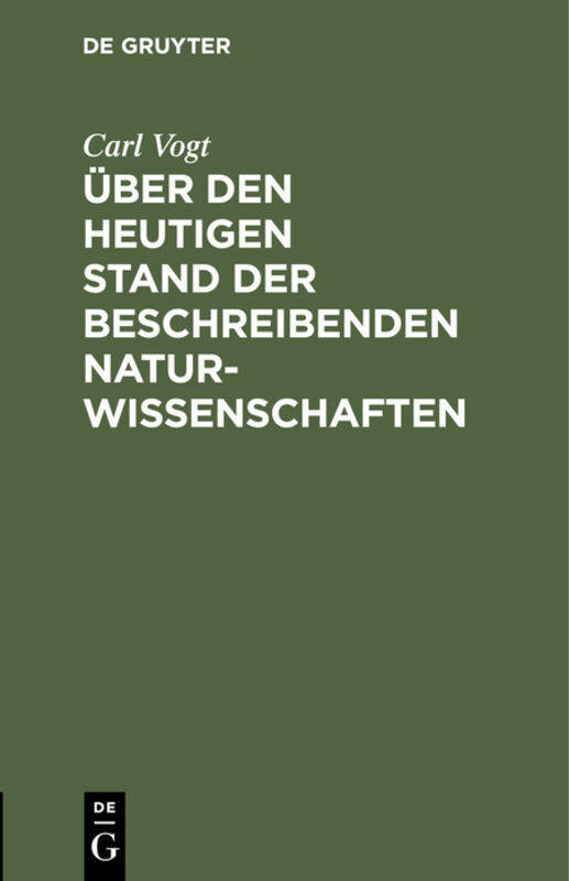 Über Den Heutigen Stand Der Beschreibenden Naturwissenschaften