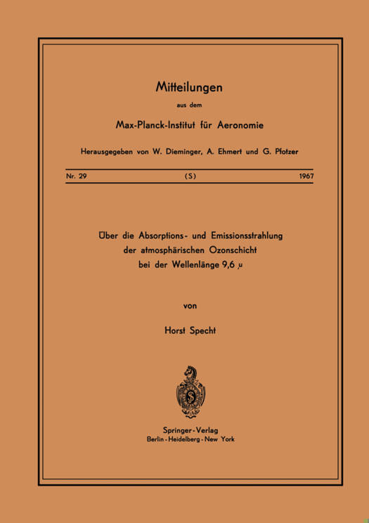 The apparatus consists of a coelostat and an infrared spectrometer coupled with an appropriate am- plifier, mechanical rectifier and arecorder. The coelostat was constructed for use at stations of different geographical latitude. With this apparatus the emission spectra of the sun and the earth's atmosphere between 8 IJ. and 111J. wave-length were measured on clear days at different zenith angles of the sun and the percentage absorp- tion and emission, respectively, of the atmospherical ozone layer were computed. Assuming the validity of the Lambert-Beer law the measured atmospherical transmission yielded the product of the absorption coefficient Ci and the total amount of ozone x; ä is a mean absorption coeff- cient. In the infrared the absorption coefficient is a function of pressure P and hence of the height h above the ground. Imagine the atmosphere up to a height of 50 km to be divided into any given number of homo- geneous layers, the absorption in each layer depends upon the respective absorption coefficient (Xi and the amount of ozone xi . A summation over all layers yields the total absorption which depends on the to- tal amount of ozone x and on a mean absorption coefficient Ci. This mean absorption coefficient is defined by the equation It was shown that ii is sufficiently constant even in consideration of the seasonal variations of the total amount of ozone x . Therefore, it was possible to derive the total amount of ozone x from the measured products ii . x.