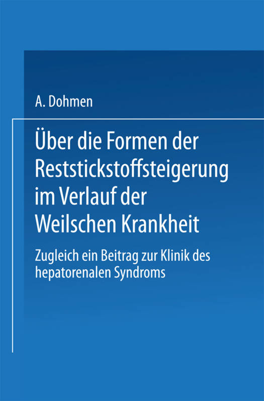 Zugleich Ein Beitrag Zur Klinik Des Hepato-Renalen Syndroms
