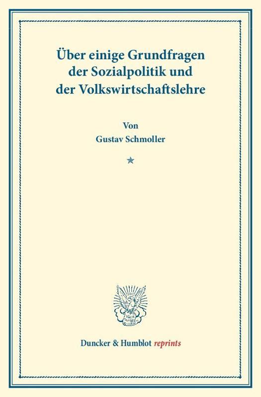 Uber Einige Grundfragen Der Sozialpolitik Und Der Volkswirtschaftslehre