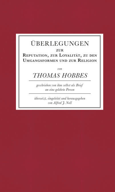 Alfred J. Noll übersetzt Hobbes' "Überlegungen" anlässlich des 370. Geburtstages des "Leviathan" erstmalig ins Deutsche und macht so ein Stück Wissenschaftsgeschichte zugänglich.