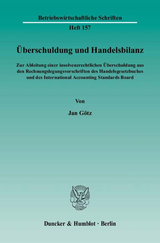 Jan Götz analysiert die geltende Ausgestaltung des insolvenzrechtlichen Überschuldungstatbestands. Dabei hebt er grundlegende Parallelen zu nationalen und internationalen Rechnungslegungsvorschriften hervor und entwickelt hierauf aufbauend einen Vorschlag für eine sachgerechte Überschuldungskonstruktion unter Einbezug der IAS/IFRS.