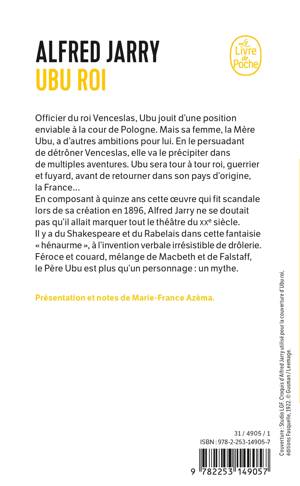 Officier du roi Venceslas, décoré de l'ordre de l'Aigle rouge, Ubu jouit d'une position enviable à la cour de Pologne. Mais sa femme, la Mère Ubu, a bien d'autres ambitions pour lui. En le persuadant de détrôner Venceslas, elle va le précipiter dans de multiples aventures. Ubu sera tour à tour roi, guerrier et fuyard, avant de devenir «maître des Phynances» dans son pays d'origine, la France... En composant à quinze ans cette oeuvre parodique et bouffonne, qui fit scandale lors de sa création en 1896, Alfred Jarry (1873-1907) ne se doutait certes pas qu'il allait marquer de son empreinte tout le théâtre du xxe siècle, de Roger Vitrac à Boris Vian et à Eugène Ionesco. Il y a du Shakespeare et du Rabelais dans cette fantaisie «hénaurme» et truculente, au rythme débridé, à l'invention verbale irrésistible de drôlerie. Tour à tour féroce et couard, vaniteux et inquiet, mélange de Macbeth et de Falstaff, le Père Ubu est plus qu'un personnage : c'est un mythe, incarnation d'une humanité à la fois terrifiante et dérisoire, comique à force de laideur, colossale de sottise et de lâcheté.