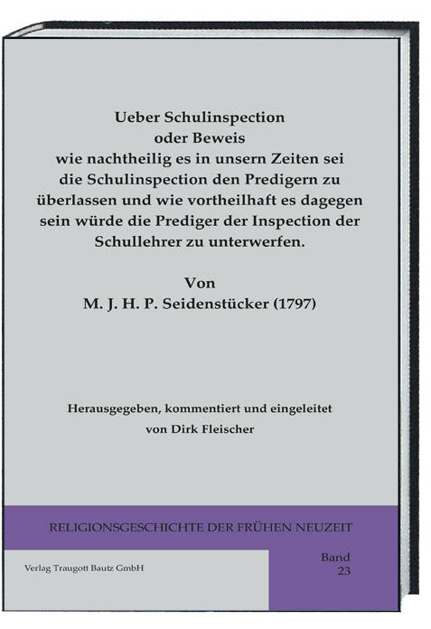 Am Ende des 18. Jahrhunderts forderten zahlreiche Pädagogen ein Ende der geistlichen Schulaufsicht. An die Stelle der geistlichen Schulaufsicht sollte eine Kontrolle durch besonders qualifizierte Lehrer, d.h. durch Männer aus den eigenen Reihen eingeführt werden. Von einer solchen durch pädagogische Fachleute übernommenen Kontrolle erhoffte sich beispielsweise der Berliner Pädagoge Johann Julius Hecker (1707-1768) eine deutliche Verbesserung der institutionalisierten schulischen Träger von Bildungs- und Erziehungsaufgaben und damit schlicht bessere Leistungen der Schüler. Zu den wichtigsten Befürwortern einer Veränderung der Schulaufsicht zählte Johann Heinrich Philipp Seidenstücker, der als Rektor der Lateinschule in Lippstadt tätig war. Seine pfarrerkritische Schrift Ueber Schulinspection oder Beweis wie nachtheilig es in unsern Zeiten sei die Schulinspection den Predigern zu überlassen und wie vortheilhaft es dagegen sein würde die Prediger der Inspection der Schullehrer zu unterwerfen aus dem Jahre 1797 gehört zu den interessantesten Beiträgen in dieser hitzig geführten Debatte.