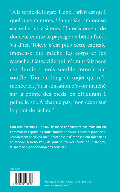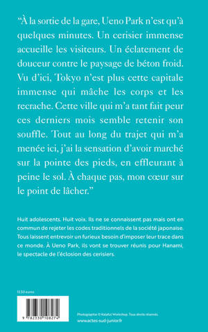 Un roman choral qui donne la parole à huit adolescents, en plein coeur du parc Ueno de Tokyo, à l'occasion de l'éclosion des cerisiers en fleurs.
