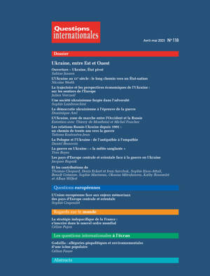 Au cœur de l’actualité internationale depuis l’invasion russe, l’Ukraine demeure aussi paradoxalement un pays méconnu. Pays le plus vaste de l’ensemble du continent européen après la Russie, l’Ukraine comptait 44 millions d’habitants en février 2022. Sa trajectoire politique et économique s’est avérée particulièrement chaotique depuis son accession à l’indépendance en 1991. Ce numéro de Questions internationales s’attache à rendre accessibles les principaux enjeux géopolitiques du conflit actuel et les spécificités de l’identité de ce pays européen entre Est et Ouest.