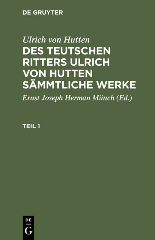 Ulrich Von Hutten: Des Teutschen Ritters Ulrich Von Hutten Sämmtliche Werke. Teil 1