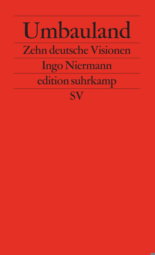 Nach dem Ende des Zweiten Weltkriegs tat man in der Bundesrepublik alles, um einen nationalen Sonderweg zu vermeiden. Selbst wenn ein neuer Patriotismus gefordert wurde, geschah das in der Absicht, Deutschland als westliche Demokratie endlich restlos zu normalisieren. Doch damit sich Deutschland gegen die wachsende internationale Konkurrenz behaupten kann, braucht es Standortvorteile, die einmalig und möglichst schwer nachzuahmen sind. So zwingt gerade die Globalisierung zur Suche nach spezifisch deutschen Visionen. In seinem Buch Umbauland formuliert Ingo Niermann zehn provozierend einfache Vorhaben, wie es mit Deutschland doch noch klappen kann, unter anderem eine neue Grammatik, eine Bodenreform, eine neue Partei und das größte Bauwerk der Welt.