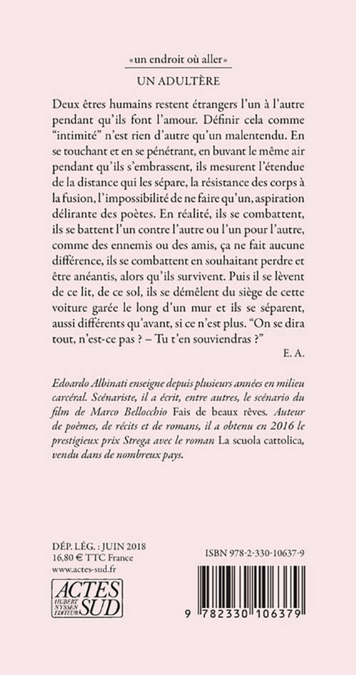 Sur une île à deux heures de la capitale italienne, un couple clandestin passe deux jours et deux nuits. La passion amoureuse vue comme un combat, entre désir de se perdre et affirmation de sa propre liberté. Par le finaliste du prix Strega 2016.