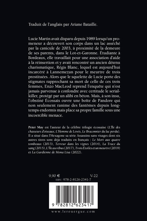 Lucie Martin avait disparu depuis 1989 lorsqu'un promeneur a découvert son corps dans un lac asséché par la canicule de 2003, à proximité de la demeure de ses parents, dans le Lot-et-Garonne. Étudiante à Bordeaux, elle travaillait pour une association d'aide à la réinsertion et y avait rencontré un ancien détenu charismatique, Régis Blanc, lequel est aujourd'hui incarcéré à Lannemezan pour le meurtre de trois prostituées. Alors que le squelette de Lucie porte des stigmates rapprochant sa mort de celle de ces trois femmes, Enzo MacLeod reprend l'enquête qui n'est jamais parvenue à confondre avec certitude le serial-killer, protégé par un alibi en béton. Mais, à son insu, l'obstiné Écossais ouvre une boîte de Pandore qui non seulement ranime des fantômes depuis longtemps endormis mais place sa propre famille sous une incoercible menace.