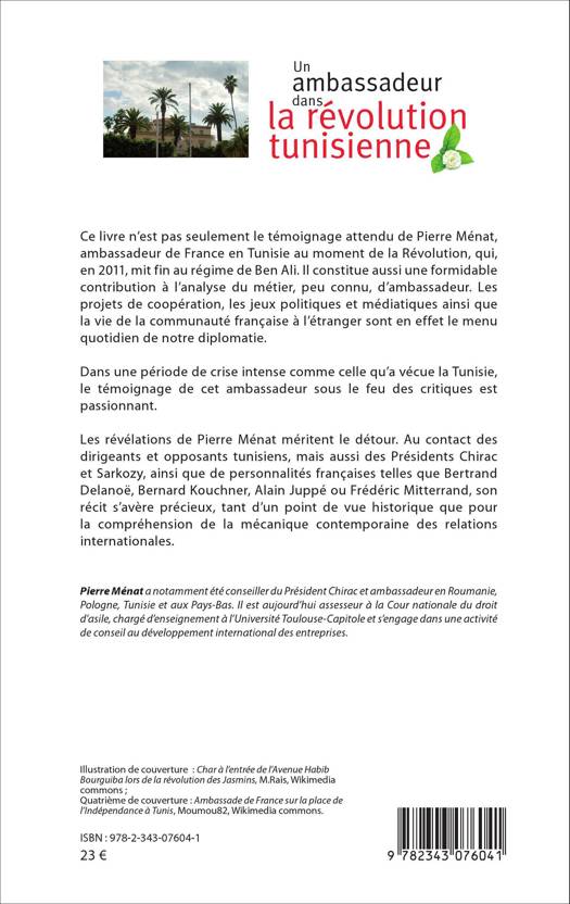 Ce livre n'est pas seulement le témoignage attendu de Pierre Ménat, ambassadeur de France en Tunisie au moment de la Révolution, qui, en 2011, mit fin au régime de Ben Ali. Il constitue aussi une formidable contribution à l'analyse du métier d'ambassadeur. Il permet de mieux appréhender les projets de coopération, les jeux politiques et médiatiques ainsi que la mécanique contemporaine des relations internationales.