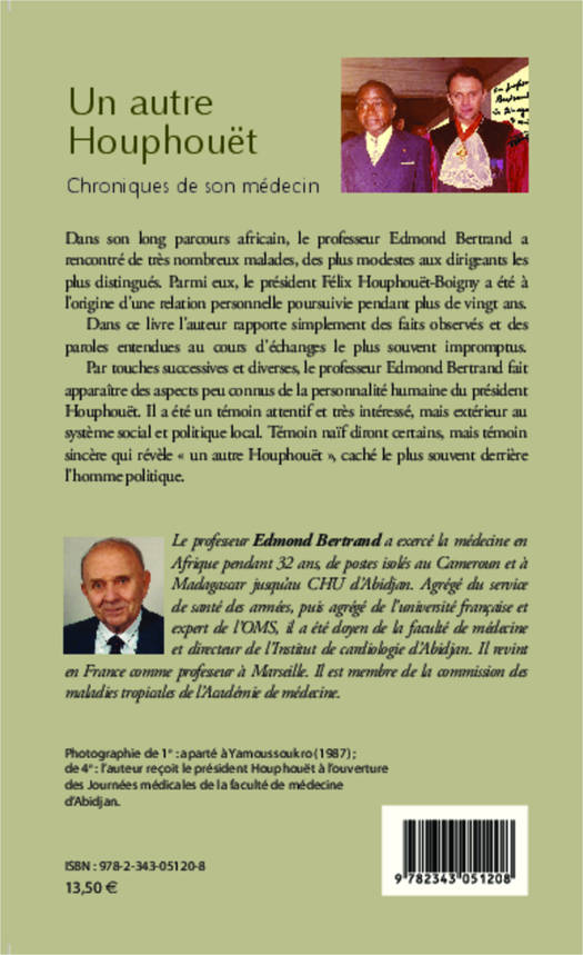 Dans ce livre, le professeur Edmond Bertrand, qui a rencontré de très nombreux malades dont le président Félix Houphouët-Boigny, rapporte des faits observés et des paroles entendues au cours d'échanges le plus souvent impromptus. Extérieur au système social et politique local, il fait apparaître des aspects peu connus de la personnalité humaine du président. Témoin naïf diront certains mais témoin sincère qui révèle "un autre Houphouët", caché le plus souvent derrière l'homme politique.