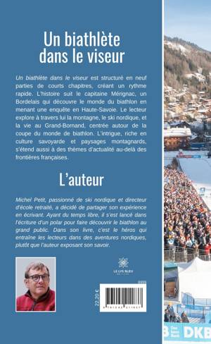 Un biathlète dans le viseur est structuré en neuf parties de courts chapitres, créant un rythme rapide. L'histoire suit le capitaine Mérignac, un Bordelais qui découvre le monde du biathlon en menant une enquête en Haute-Savoie. Le lecteur explore à travers lui la montagne, le ski nordique, et la vie au Grand-Bornand, centrée autour de la coupe du monde de biathlon. L'intrigue, riche en culture savoyarde et paysages montagnards, s'étend aussi à des thèmes d'actualité au-delà des frontières françaises.