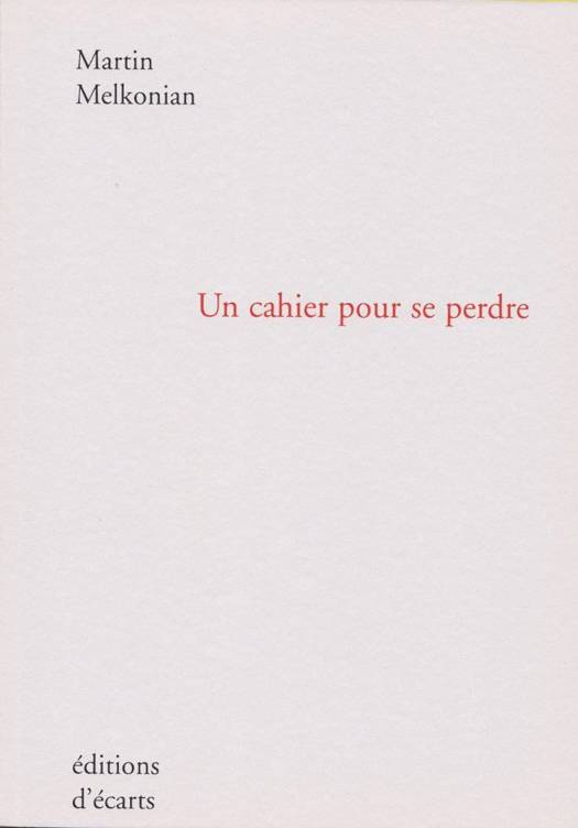 ” Ici personne ne meurt “, lisons-nous dans ce cahier. C’est bien avec une rare ingénuité que Martin Melkonian en appelle à l’inscription calligraphique puis typographique : à une vérité de l’être mis en pages. Cette vérité ouvre un espace ou plutôt s’ouvre à l’espace du livre. Grâce à sa présence architecturale, sa respiration spécifique, le blanc des pages y est sa demeure. La perte annoncée dès l’ouverture (le titre) réside dans le “lâcher” de l’inscription ; le gain, dans le cahier fait livre.