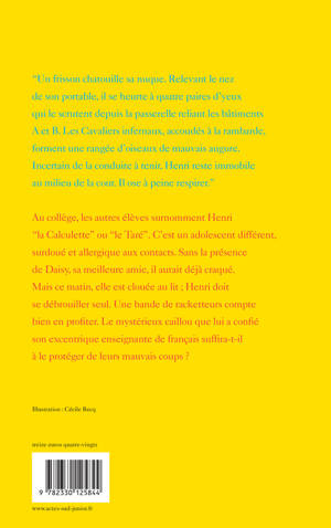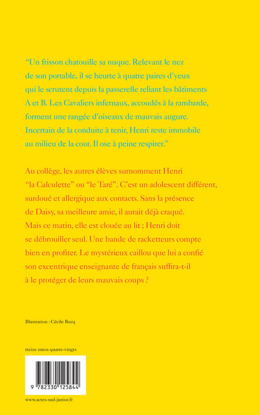 Au collège, les autres élèves surnomment Henri "la Calculette" ou "le Taré". Car Henri est un enfant "différent", surdoué, allergique aux contacts physiques et obsédé par l'ordre et les petits rituels. Sans la présence de sa meilleure amie Daisy, il aurait déjà craqué. Mais elle l'a pris sous son aile, et grâce à son optimisme communicatif, Henri se sent presque intégré. Ils forment une équipe soudée et inséparable. Mais un matin, Daisy n'est pas là pour venir le chercher et partir ensemble à l'école. Elle est malade, clouée au lit ! Il doit se débrouiller seul et les Cavaliers infernaux, une bande de petits racketteurs, comptent bien en profiter. Leur affreux chantage risque de mettre à mal son amitié avec Daisy. Le mystérieux caillou que lui a confié son excentrique enseignante de français suffira-t-il à le protéger des sales coups?