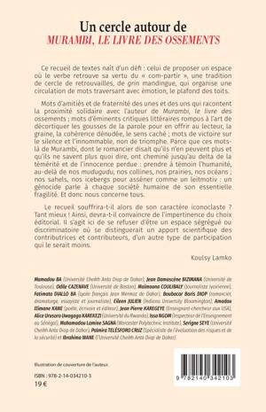 Ce recueil de textes naît d'un défi celui de proposer un espace où le verbe retrouve sa vertu du com-partir, une tradition de cercle de retrouvailles, de grin mandingue, qui organise une circulation de mots traversant avec émotion, le plafond des toits. Mots d'amitiés et de fraternité des unes et des uns qui racontent la proximité solidaire avec l'auteur de Murambi, le livre des ossements ; mots d'éminents critiques littéraires rompus à l'art de décortiquer les gousses de la parole pour en offrir au lecteur, la graine, la cohérence dénudée, le sens caché; mots de victoire sur le silence et l'innommable, non de triomphe. Parce que ces mots-là de Murambi, dont le romancier disait qu'ils n'en peuvent plus et qu'ils ne savent plus quoi dire, ont cheminé jusqu'au delta de la témérité et de l'innocence perdue prendre à témoin l'humanité, au-delà de nos mudugudu, nos collines, nos prairies, nos océans; nos sahels, nos icebergs pour asséner comme un leitmotiv un génocide parle à chaque société humaine de son essentielle fragilité. Et donc nous concerne tous. Koulsy Lamko