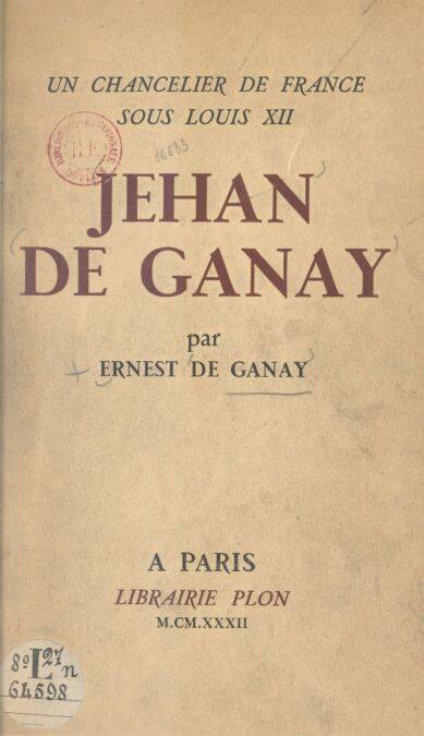 Un chancelier de France sous Louis XII : Jehan de Ganay EBOOK