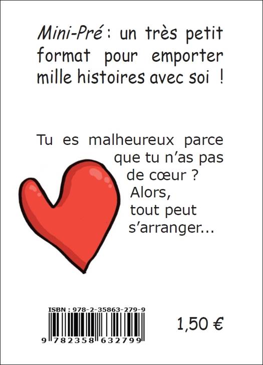 Dans la collection Mini-Pré, un très petit format pour emporter mille histoires avec soi ! - Tu es malheureux parce que tu n'as pas de cœur ? Alors, tout peut s'arranger... - Une histoire pour les tout-petits, imaginée et dessinée par un très jeune auteur et son papa. Dès 1 an