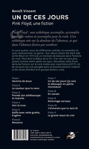 Nous sommes tous les deux deux âmes prisonnières d'un bocal, année après année, qui courrons le même sol. Et pour trouver quoi ? Ces mêmes vieilles peurs. J'aimerais que tu sois avec moi. Ils sont quatre, issus de différentes réalités, et ensemble ils vont révolutionner un genre : leur album phare The Dark Side of the Moon en 1973 est un moment de bascule dans l'histoire du rock. Peut-être le début de la fin ? Car rien ne sera plus jamais comme avant après cet opus. Deuxième volet d'une série de fictions sur le rock initiée avec Local héros (2017), Un de ces jours est une plongée dans le bouillonnement collectif et les zones d'ombre d'un groupe devenu culte. Concentré sur leurs premières années, celles menant au chef d'oeuvre, il se fait aussi le récit des premiers émois d'un auteur qui a puisé dans la musique une énergie qui l'accompagne encore dans l'écriture aujourd'hui.