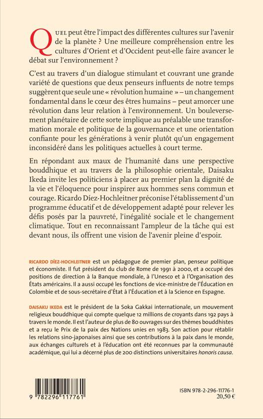 Que peut être l'impact des différentes cultures sur l'avenir de la planète ? En répondant au maux de l'humanité dans une perspective bouddhique, et au travers de la philosophie orientale, Daisaku Ikeda invite à placer au premier plan la dignité de la vie. Ricardo Diez-Hochleitner préconise un programme éducatif et de développement adapté pour relever les défis posés par la pauvreté, l'inégalité scolaire, le changement climatique.