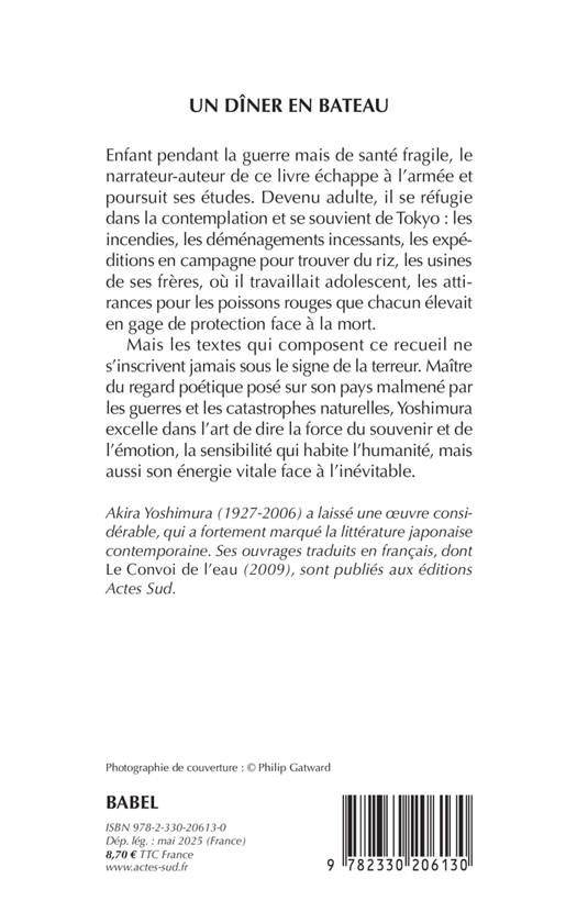 Enfant pendant la guerre mais de santé fragile, le narrateur-auteur de ce livre échappe à l'armée et poursuit ses études. Devenu adulte, il se réfugie dans la contemplation et se souvient de Tokyo : les incendies, les déménagements incessants, les expéditions en campagne pour trouver du riz, les usines de ses frères, où il travaillait adolescent, les attirances pour les poissons rouges que chacun élevait en gage de protection face à la mort. Mais les textes qui composent ce recueil ne s'inscrivent jamais sous le signe de la terreur. Maître du regard poétique posé sur son pays malmené par les guerres et les catastrophes naturelles, Yoshimura excelle dans l'art de dire la force du souvenir et de l'émotion, la sensibilité qui habite l'humanité, mais aussi son énergie vitale face à l'inévitable.