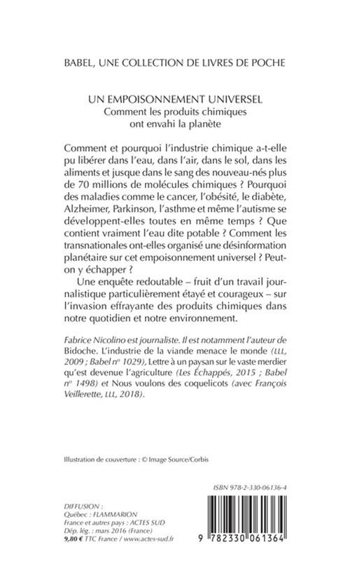 Comment et pourquoi l'industrie chimique a-t-elle pu libérer dans l'eau, dans l'air, dans le sol, dans les aliments et jusque dans le sang des nouveau-nés plus de 70 millions de molécules chimiques ? Pourquoi des maladies comme le cancer, l'obésité, le diabète, Alzheimer, Parkinson, l'asthme et même l'autisme augmentent-elles toutes en même temps ? Que contient vraiment l'eau dite potable ? Comment les transnationales ont-elles organisé une désinformation planétaire sur cet empoisonnement universel ? Peut-on y échapper ? Une enquête redoutable sur l'invasion effrayante des produits chimiques dans notre quotidien et notre environnement.