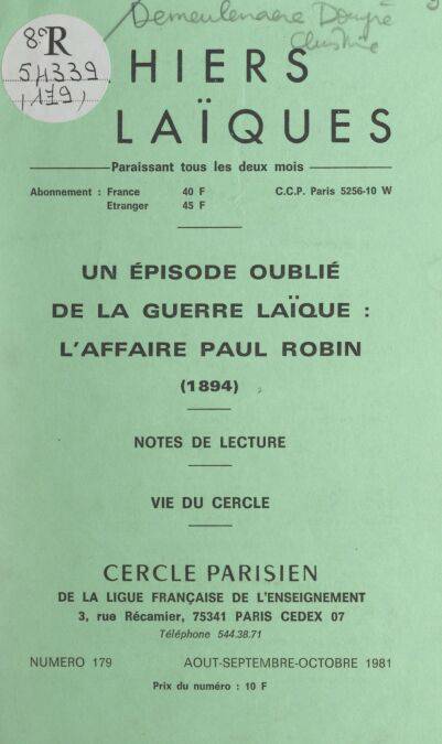 6. Un épisode oublié de la guerre laïque : l'affaire Paul Robin (1894)
