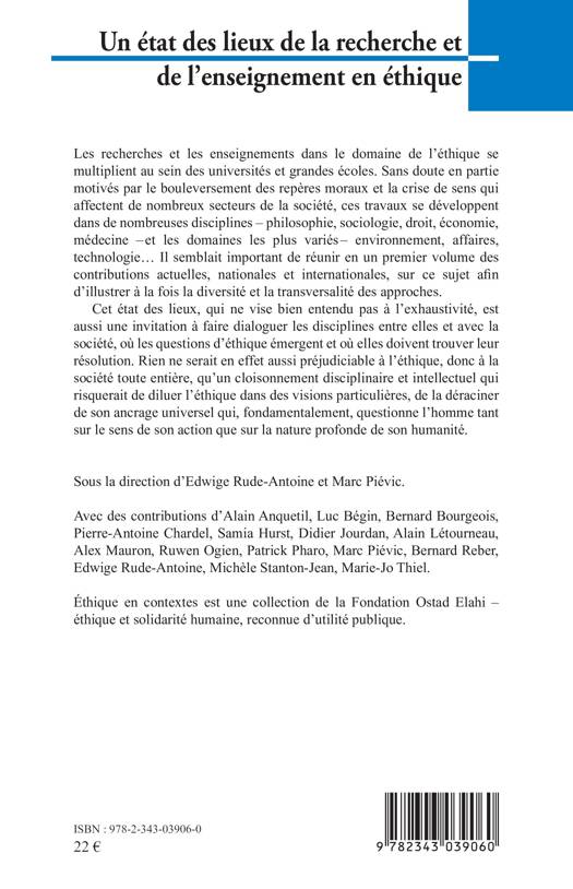 Les recherches et les enseignements dans le domaine de l’éthique se multiplient au sein des universités et grandes écoles. Sans doute en partie motivés par le bouleversement des repères moraux et la crise de sens qui affectent de nombreux secteurs de la société, ils se développent dans de nombreuses disciplines - philosophie, sociologie, droit, économie, médecine - et les domaines les plus variés : environnement, affaires, technologie. Il semblait important de les réunir.