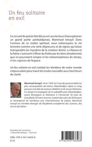 Dans l'univers de ce grand poète azerbaïdjanais, Mammad Ismayil, nous entrevoyons la vie terrestre comme une série d'épreuves et de signes qui laisse transparaître les mystères de la création divine. La Nature et la Patrie s'unissent à l'Âme du Poète par les liens émotionnels que ne pourraient rompre ni les métamorphoses du temps, ni les caprices de l'espace. Un feu solitaire en exil combat les ténèbres de notre monde crépusculaire pour tracer les routes nouvelles aux chercheurs de clarté.