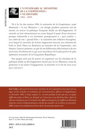 Né à à la fin des années 1950, le ministère de la Coopération, aussi dénommé la rue Monsieur, est chargé pendant quarante ans de mettre en oeuvre la politique française d'aide au développement. Il connaît un lent cheminement au cours duquel il passe d'une structure presque informelle à un ministère pratiquement à part entière, aux côtés de son grand frère le ministère des Affaires étrangères, avec lequel le caractère de fratrie s'apparente souvent aux relations de Caïn et Abel. L'auteur présente, au gré de ses différentes affectations et de ses souvenirs, l'évolution de ce qui aura sans doute été le plus petit et le plus éphémère ministère de la Cinquième République, soulignant l'engagement, la sincérité et la foi de tous ceux qui y ont servi.