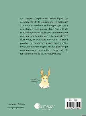 Au travers d'expériences scientifiques, et accompagné de la gourmande et pétillante Samara, un chercheur en biologie, spécialiste des plantes, vous plonge dans l'intimité de son jardin presque ordinaire. Une immersion dans un lieu familier, car cela pourrait être chez vous, et pourtant méconnu, car il possède de nombreux secrets bien gardés. Posez un nouveau regard sur les plantes qui vous entourent pour mieux comprendre le fonctionnement de ces êtres fascinants...