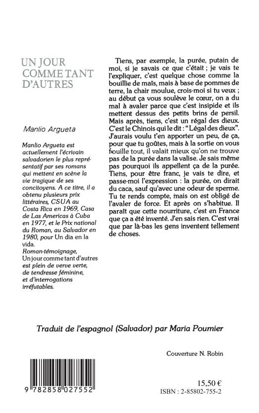 Un roman-témoignage mettant en scène la vie tragique de ses concitoyens. L'auteur a obtenu plusieurs prix littéraires dont le Prix national du roman au Salvador en 1980.