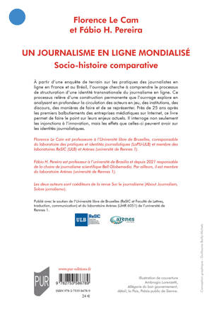 À partir d'une enquête de terrain sur les pratiques des journalistes en ligne en France et au Brésil, l'ouvrage cherche à comprendre le processus de structuration d'une identité transnationale du journalisme en ligne. Ce processus relève d'une construction permanente que l'ouvrage explore en analysant en profondeur la circulation des acteurs en jeu, des institutions, des discours, des manières de faire et de se représenter. Près de 25 ans après les premiers balbutiements des entreprises médiatiques sur Internet, ce livre permet de faire le point sur leurs enjeux actuels. Il interroge non seulement les injonctions à l'innovation, mais les effets que celles-ci peuvent avoir sur les identités journalistiques.