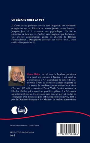 Il n'avait aucun problème avec le sexe, Augustin, cet adolescent octogénaire qui se félicitait de n'avoir jamais connu l'amour ! Jusqu'au jour où il rencontre une psychologue. Un feu va alimenter sa folie qui va s'avérer aussi tragique que burlesque ! Une avocate complètement givrée est chargée de défendre l'émasculateur... Désopilante descente aux enfers d'un... jeune vieillard imprévisible !!!
