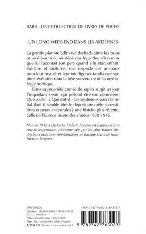 La grande pianiste Edith Waldschade aime les loups et en élève trois, en dépit des légendes effrayantes que lui racontait son père quand elle était enfant. Solitaire et taciturne, elle respecte ces animaux pour leur beauté et leur intelligence tandis que son père révérait en eux la bête souveraine de la mythologie nordique. Dans sa propriété cernée de sapins surgit un jour l'inquiétant Erwin, qui prétend être son dernï-frère. Que veut-il ? Que sait-il ? Le mystérieux passé familial dont il semble être le dépositaire mêle superstitions et peurs ancestrales à une histoire plus récente, celle de l'Europe brune des années 1930-1940.