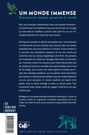 Voici un ouvrage évènement, bestseller du New York Times au succès mondial. Le lauréat du prix Pulitzer Ed Yong propose une immersion passionnante dans une nouvelle dimension : le monde tel qu'il est réellement perçu par les animaux. Un ouvrage qui émerveille et modifiera à jamais votre point de vue sur ce monde immense qui nous entoure.