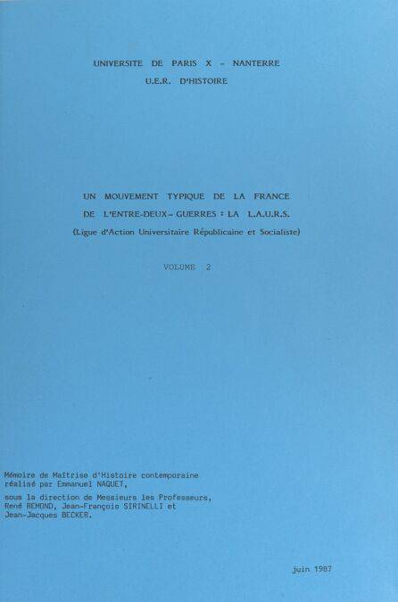 Un mouvement typique de la France de l'entre-deux-guerres : la L.A.U.R.S. (Ligue d'action universitaire républicaine et socialiste) (2) EBOOK