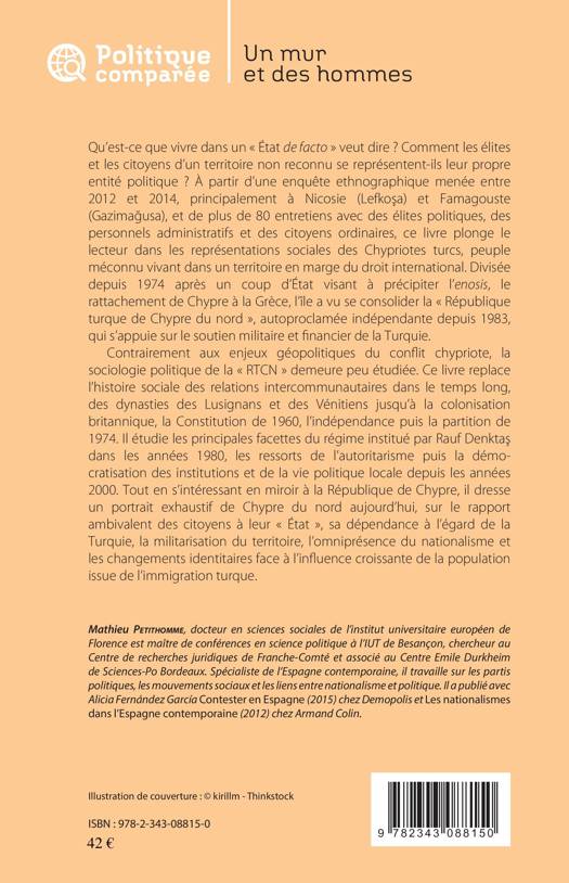 Qu'est-ce que vivre dans un "Etat de facto" veut dire ? Ce livre plonge le lecteur dans les représentations sociales des Chypriotes turcs, peuple méconnu vivant dans un territoire en marge du droit international. Divisée depuis 1974, l'île a vu se consolider la "République turque de Chypre du Nord", indépendante depuis 1983. A partir d'une enquête ethnographique, l'auteur dresse un portrait exhaustif de Chypre du Nord : rapport ambivalent des citoyens à leur "Etat", dépendance à l'égard de la Turquie, militarisation du territoire, omniprésence du nationalisme.