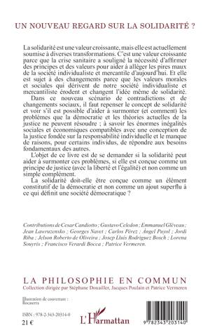 La solidarité est une valeur croissante, mais soumise à des transformations. D'un côté, la crise sanitaire (Covid-19) a souligné la nécessité d'affirmer des principes et des valeurs pour aider à alléger les pires maux de la société individualiste et mercantile d'aujourd'hui. D'un autre côté, elle change parce que nos valeurs morales et sociales de cette société s'érodent. Dans ce nouveau scénario de contradictions et de changements sociaux, il faut repenser le concept de solidarité et voir s'il est possible de surmonter les problèmes que la démocratie et les théories de la justice ne peuvent résoudre, à savoir les énormes inégalités sociales et économiques.