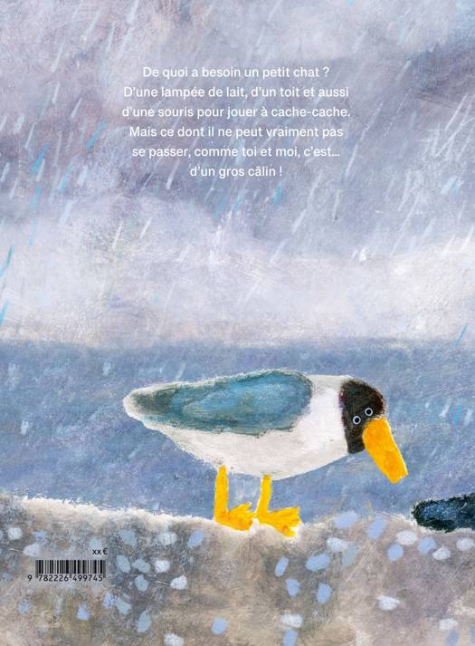 Petit chat est comme tous les autres : il a deux petits yeux, deux petites oreilles et des petites pattes pourvues de griffes. Il aime tout un tas de choses : partir en promenade, se faire mouiller par la pluie, regarder les oiseaux par la fenêtre, lézarder au soleil. Mais ce dont il ne peut vraiment pas se passer, c'est... d'un gros câlin !