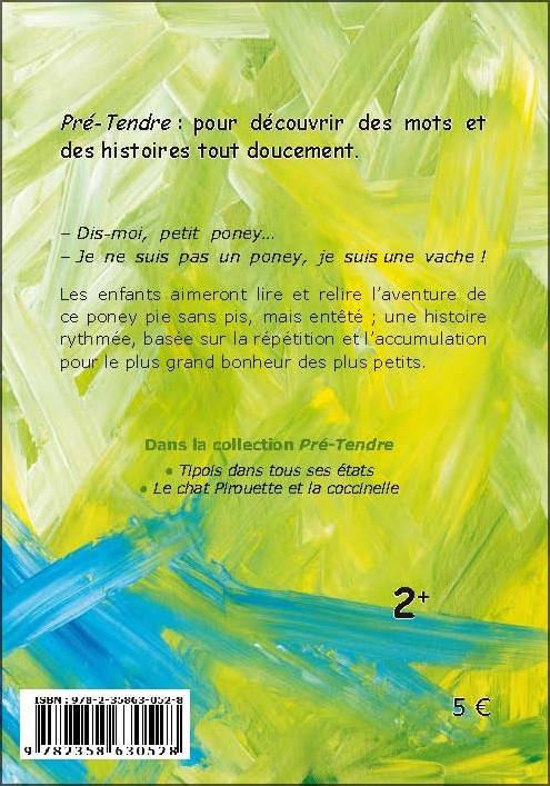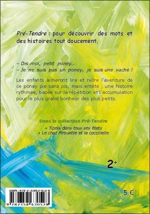 Dans la collection "Pré-Tendre" : pour découvrir des mots et des histoires tout doucement. – Dis-moi, petit poney… – Je ne suis pas un poney, je suis une vache ! Les enfants aimeront lire et relire l’aventure de ce poney pie sans pis, mais entêté ; une histoire rythmée, basée sur la répétition et l’accumulation pour le plus grand bonheur des plus petits. Petit album tout en couleur à mettre dans les poches, dès 2 ans. Ecriture en cursive pour plaire également aux lecteurs débutants de CP. Illustrations d'Aude Guilvard.