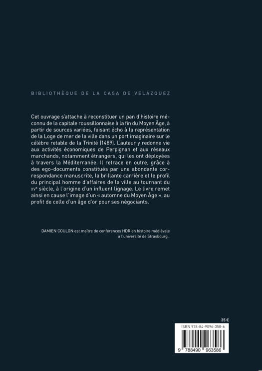Cet ouvrage s’attache à reconstituer un pan d’histoire méconnu de la capitale roussillonnaise à la fin du Moyen Âge, à partir de sources variées, faisant écho à la représentation de la Loge de mer de la ville dans un port imaginaire sur le célèbre retable de la Trinité (1489). L’auteur y redonne vie aux activités économiques de Perpignan et aux réseaux marchands, notamment étrangers, qui les ont déployées à travers la Méditerranée. Il retrace en outre, grâce à des ego-documents constitués par une abondante correspondance manuscrite, la brillante carrière et le profil du principal homme d’affaires de la ville au tournant du XVe siècle, à l’origine d’un influent lignage. Le livre remet ainsi en cause l’image d’un « automne du Moyen Âge », au profit de celle d’un âge d’or pour ses négociants.
