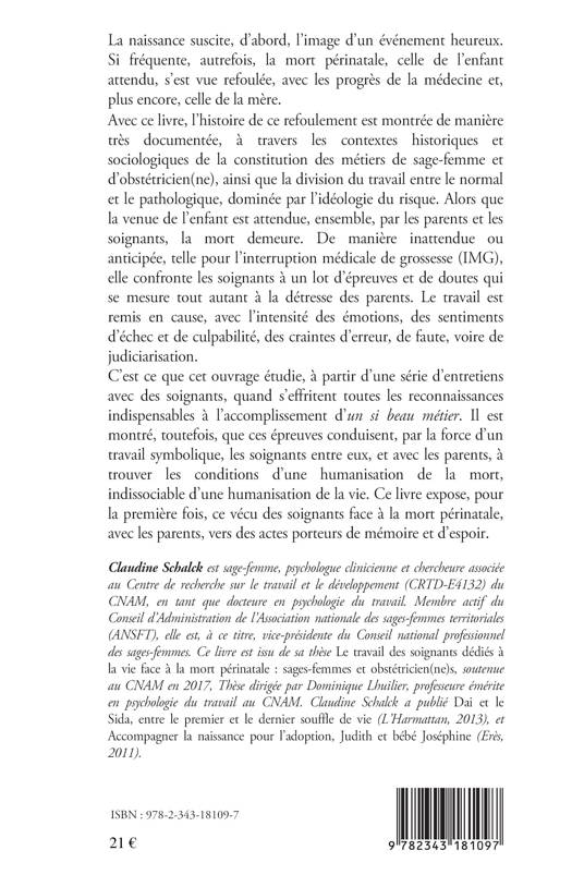 La naissance suscite, d'abord, l'image d'un événement heureux. Si fréquente, autrefois, la mort périnatale, celle de l'enfant attendu, s'est vue refoulée, avec les progrès de la médecine et, plus encore, celle de la mère. Avec ce livre, l'histoire de ce refoulement est montrée de manière très documentée, à travers les contextes historiques et sociologiques de la constitution des métiers de sage-femme et d'obstétricien(ne), ainsi que la division du travail entre le normal et le pathologique, dominée par l'idéologie du risque. Alors que la venue de l'enfant est attendue, ensemble, par les parents et les soignants, la mort demeure. De manière inattendue ou anticipée, telle pour l'interruption médicale de grossesse (IMG), elle confronte les soignants à un lot d'épreuves et de doutes qui se mesure tout autant à la détresse des parents.