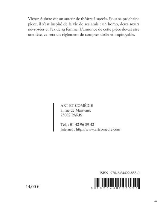 Victor Aubrac est un auteur de théâtre à succès. Pour sa prochaine pièce, il s'est inspiré de la vie de ses amis: un homo, deux soeurs névrosées et l'ex de sa femme. L'annonce de cette pièce devait être une fête, ce sera un règlement de comptes drôle et impitoyable.