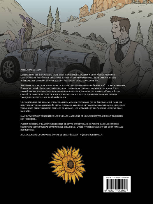 Paris, années 1930. L'inspecteur des Brigades du Tigre parisiennes Michel Plessin a deux péchés mignons : les femmes, de préférence celles des autres ou les professionnelles de l'amour, et une inébranlable confiance en son bagout. Seulement voilà, tout a une fin... Après une descente de police dans la maison close parisienne « le Sphinx » où il a ses habitudes, Plessin est arrêté par ses collègues, bien contents de lui rabattre enfin le caquet. Il est envoyé par ses supérieurs se faire oublier en province, au soleil du sud de la France. Il est chargé de donner un coup de main aux agents locaux suite à un meurtre commis dans un tranquille petit village de l'arrière pays... Plessin réussira-t-il à dénouer les fils de cette enquête sans se perdre dans les sombres secrets de cette bourgade d'apparence si paisible ? Ah, le calme de la campagne... Comme le dirait Plessin : « Que du bonheur... ».